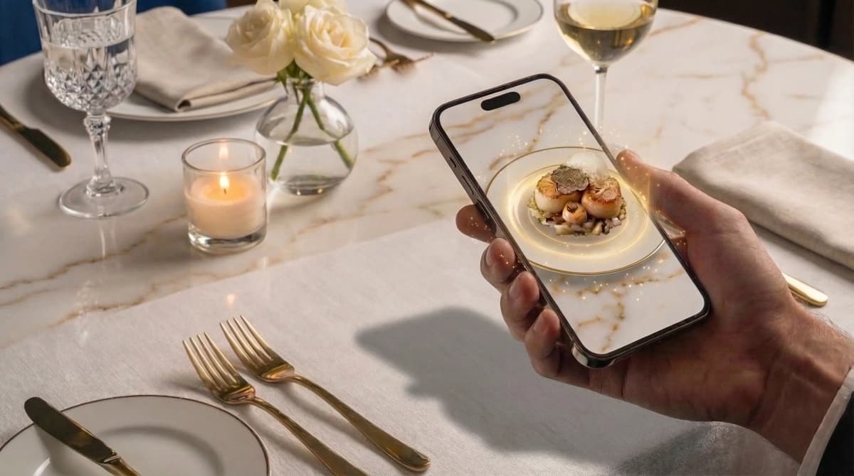 Vos clients projettent le plat en taille réelle sur leur table. L'effet "wow" qui déclenche la commande — sur iPhone et Android.